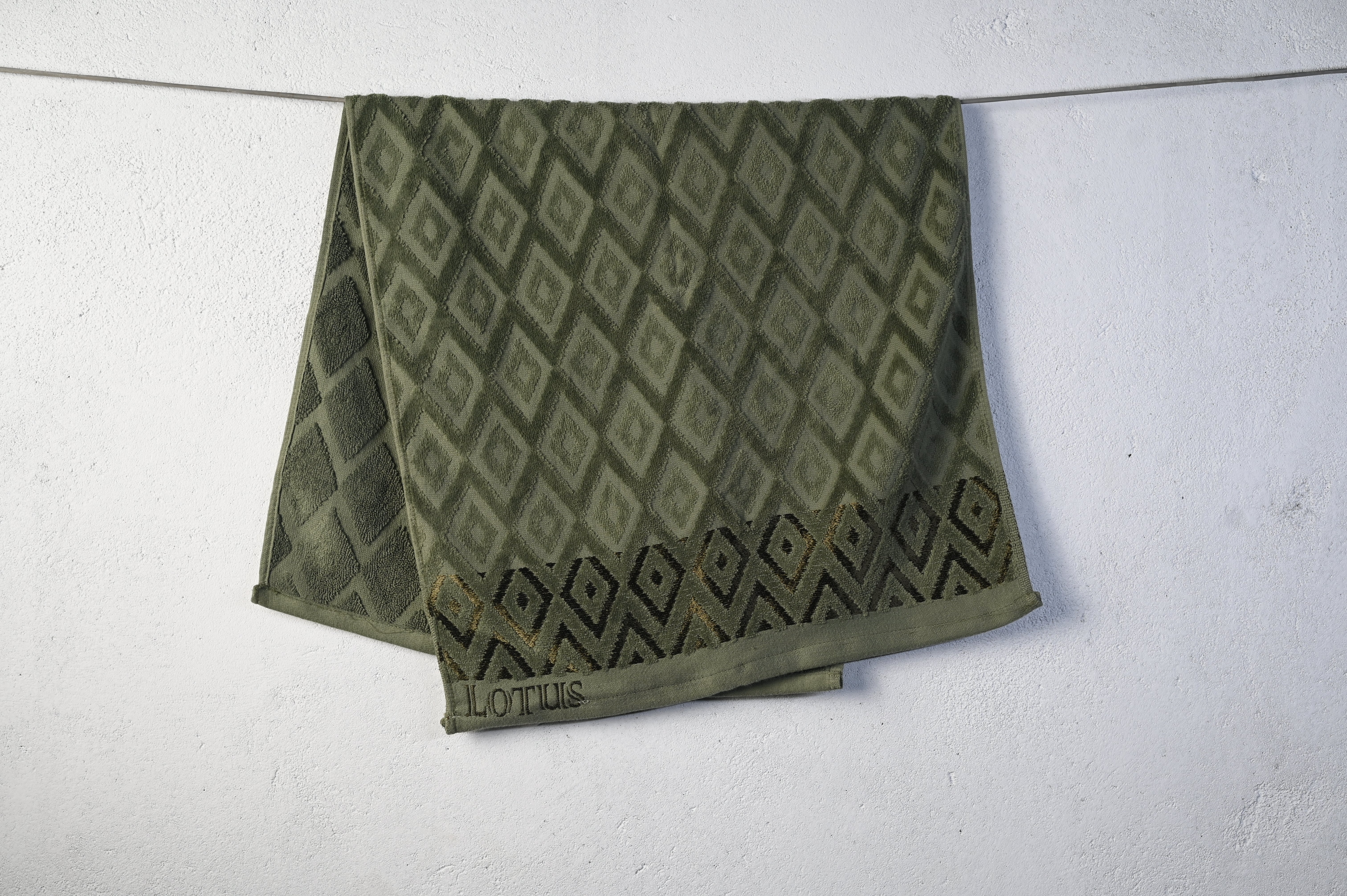 Premium 16-piece set of sheared velour towels, Size 50×90 cm, dark olive tone, velvet-soft sheared finish, Code: LOT 02.
