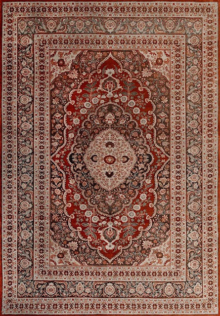Product Description Create an aura of classic opulence with our Ruby Heritage Medallion Rug. This magnificent piece features a grand central diamond medallion surrounded by an incredibly rich and intricate all-over floral and vine pattern. The color palette is luxurious, built on a dominant field of deep, vibrant ruby red and terracotta, richly accented with details in ivory, sage green, and charcoal. Power-loomed with a dense, medium pile, this rug offers the elegant texture and depth of a fine hand-knotted antique, combined with modern-day durability and comfort.